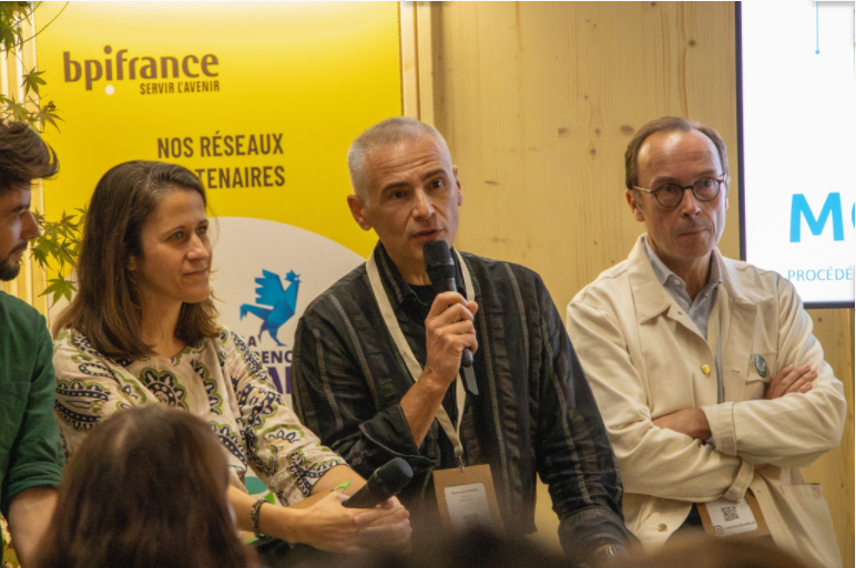 Laurent Trognon, fondateur d’Ecollant, a présenté la mission de la startup : recycler les textiles à base de polyamide grâce à une technologie issue de la recherche, et contribuer à la création d’une filière industrielle circulaire, capable de transformer les déchets textiles en matière première de demain ♻️