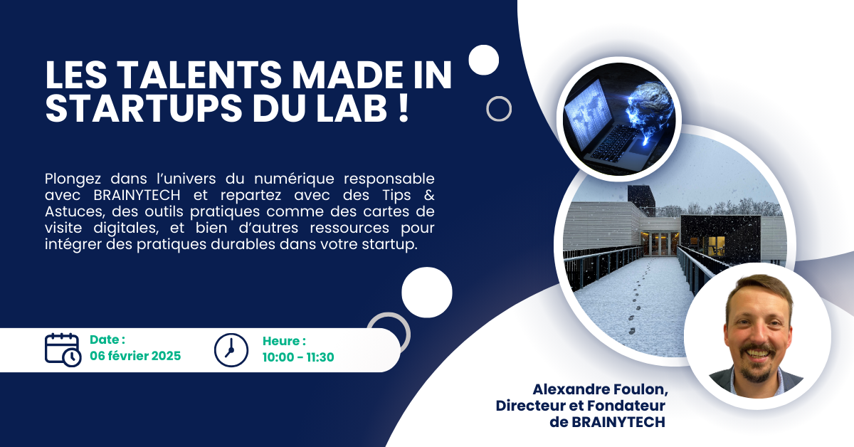 Envie de faire évoluer votre startup vers un avenir plus durable tout en optimisant vos outils numériques ? Ne manquez pas cet événement inspirant avec BRAINYTECH, une startup innovante du Lab d’AuxR_GreenLab. 💡