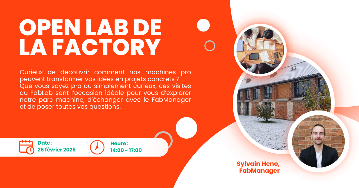 En mode porte ouverte, la Factory te propose de venir découvrir le FabLab et ses incroyables machines : imprimantes 3D, découpe laser, scanner 3D...